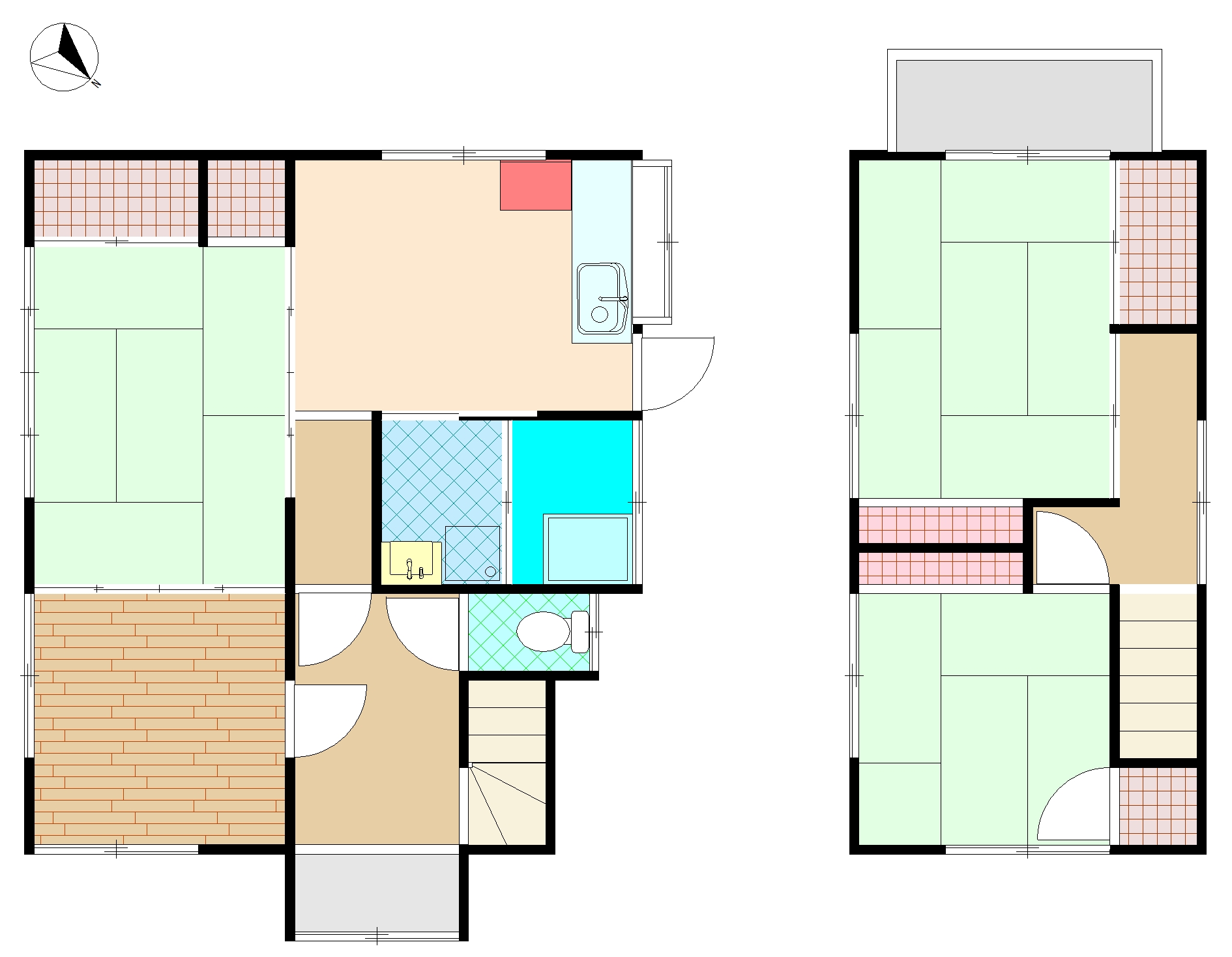 | 建物 | 延面:(公簿)75.89㎡ 構造:木造、2階建 間取:4DK(和6/洋4.7/DK6.3/和6/和4.5) 築年月:1968年(昭和43年)5月 |